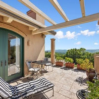 Perched high on Moon Mountain with sweeping, panoramic views that stretch all the way to San Francisco and the bay, this Spanish-style hacienda feels like the kind of Wine Country hideaway people dream about but rarely find. The arrival is dramatic, sky, vineyards, and ridgelines in every direction, and the house sits quietly above it all, offering a level of privacy and perspective that’s hard to match. From the moment you step onto the patio, you just want to stay put and stare at the horizon.